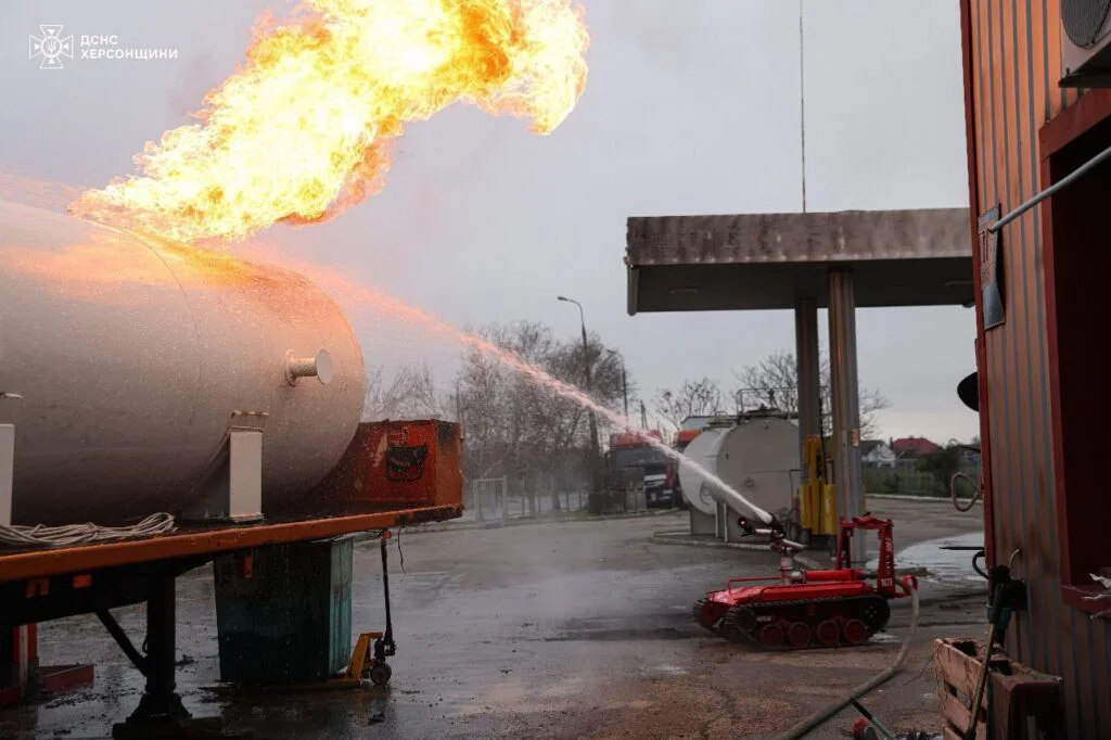 Росіяни атакували рятувальників, коли ті гасили пожежу на автозаправній станції у Херсоні (фото)
