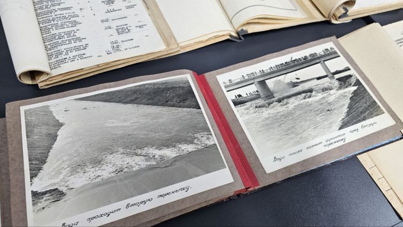Виставка демонструє документи та світлини, що відтворюють історію гідроспоруди — від перших проєктних креслень до руйнування греблі російськими окупантами у червні 2023 року.