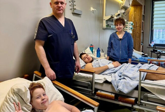 У столичному «Охматдиті» врятували двох братів з Херсона. Хлопці потрапили під танковий обстріл на власному подвір’ї і були у тяжкому стані — вже з ампутованими частинами нижніх кінцівок та відкритими мінно-вибуховими ранами.