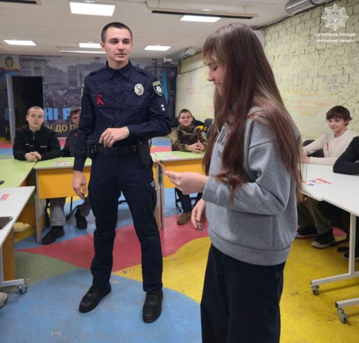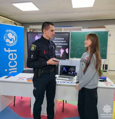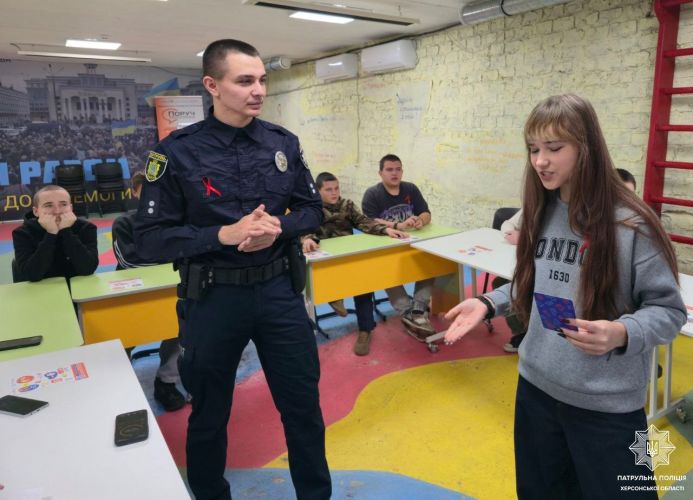 Патрульні Херсонщини провели для молоді інтерактив «Безпечний КОД» у межах кампанії «16 днів проти насильства»