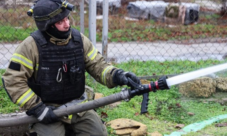 Армія РФ атакувала рятувальників, коли ті гасили пожежу, спричинену російським обстрілом, у Херсоні.